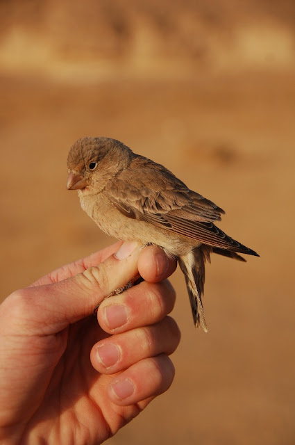 Today Ron Yael and I finally went ringing in Wadi Hayon (uvda area), after the recent postponement, things changed for the better and many birds came back to the area, so today we ventured into the unfamiliar vicinity of lark ringing!